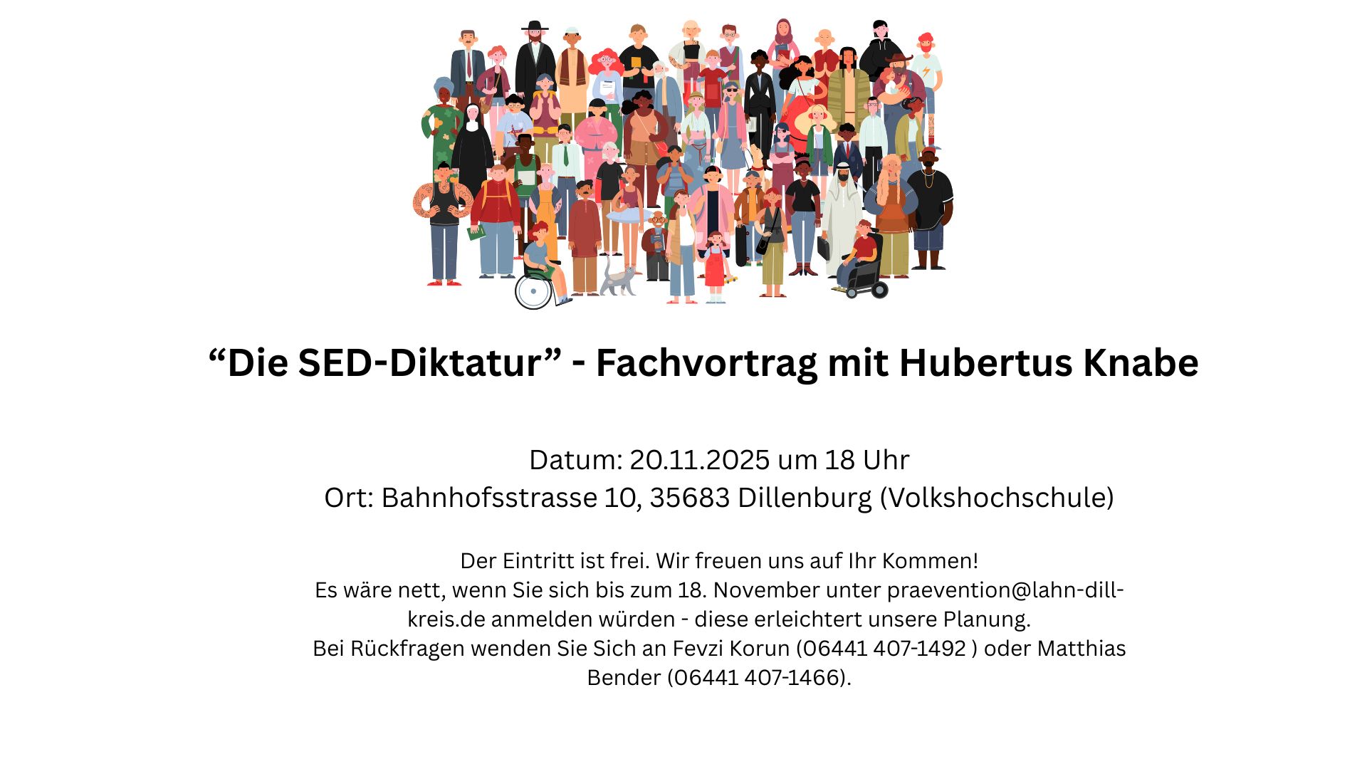 Die Aufarbeitung der SED-Diktatur ist ein zentrales Anliegen für Demokratie und Rechtsstaatlichkeit in Deutschland. Mit dieser Ausstellung möchten wir an die Opfer erinnern und Einblicke in die Mechanismen der Diktatur geben. Im Rahmen der Ausstellung findet am 20. November um 18:00 Uhr ein Fachvortrag mit dem Historiker Hubertus Knabe (ehemaliger Direktor der Gedenkstätte Berlin-Hohenschönhausen) statt. Der Vortag findet in den Räumen der VHS-Dillenburg statt. Anschließend besteht die Gelegenheit, mit Hubertus Knabe ins Gespräch zu kommen. Der Eintritt ist frei. Wir [...]