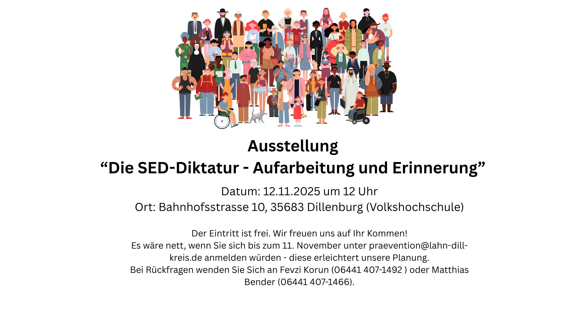 Die Aufarbeitung der SED-Diktatur ist ein zentrales Anliegen für Demokratie und Rechtsstaatlichkeit in Deutschland. Mit dieser Ausstellung möchten wir an die Opfer erinnern und Einblicke in die Mechanismen der Diktatur geben. Die Partnerschaft für Demokratie Lahn-Dill (Bundesprogramm “Demokratie leben!”) lädt Sie herzlich zur oben genannten Ausstellung ein. Die Eröffnung der Ausstellung findet am 12. November um 12:00 Uhr in der VHS-Dillenburg (Bahnhofsstrasse 10, 35683 Dillenburg). Dr. Rebecca Neuburger-Hees (Sozialdezernentin des Lahn-Dill-Kreises) wird die Ausstellung eröffnen. Der Eintritt ist frei. Wir [...]